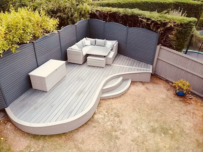 Curves also help when the house or garden is not perfectly square. Many gardens have angles, slopes, or odd corners. A curved trex decking edge can make those shapes feel intentional.